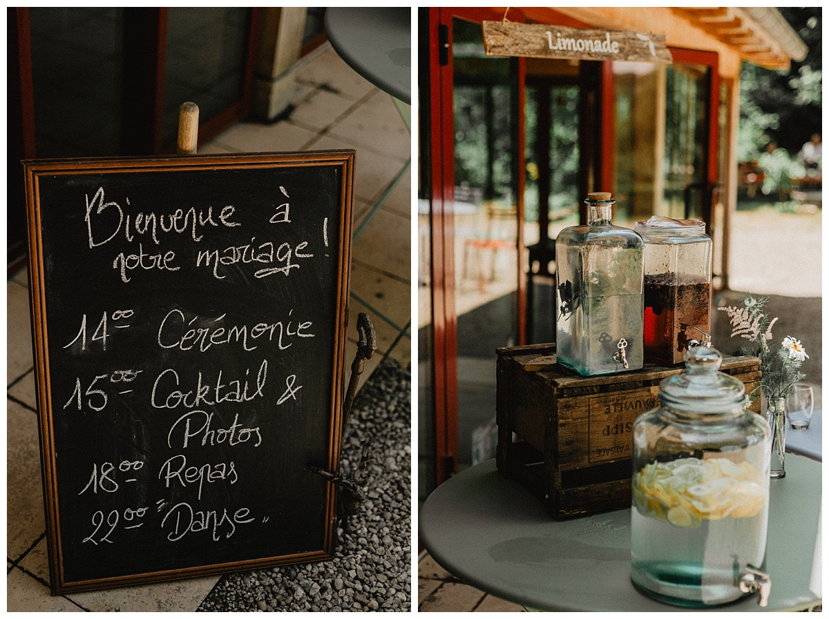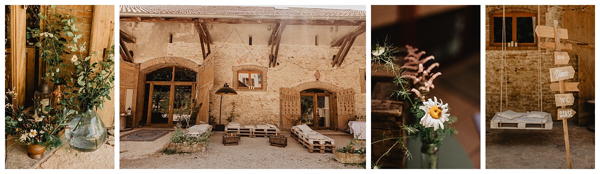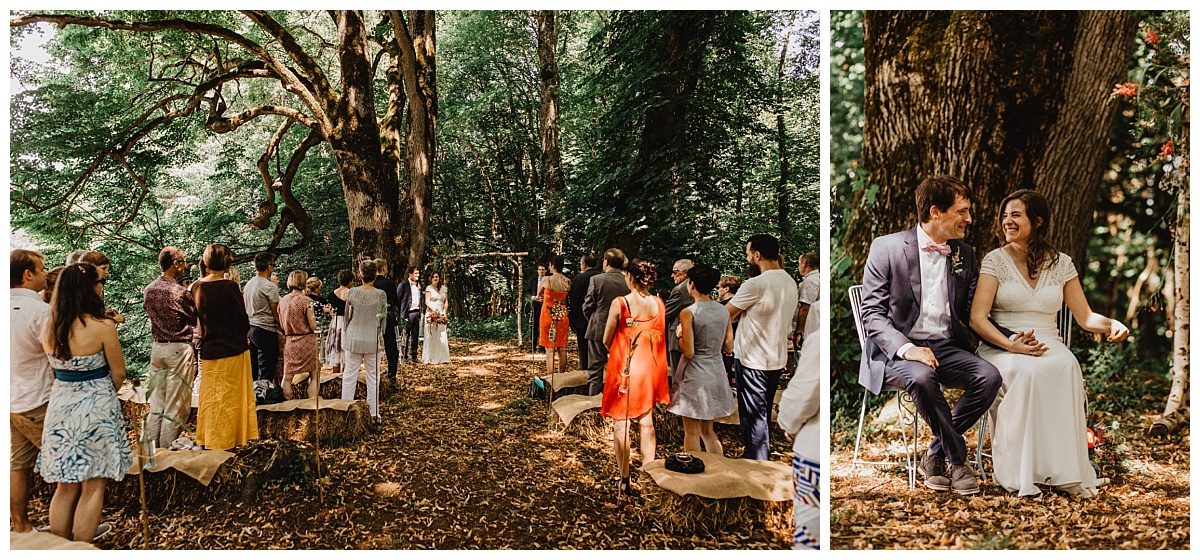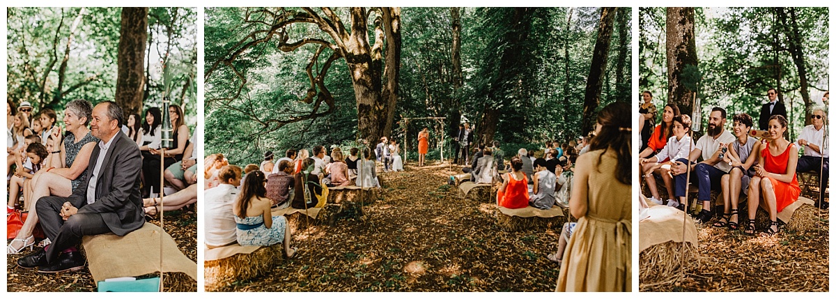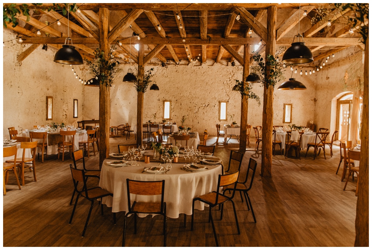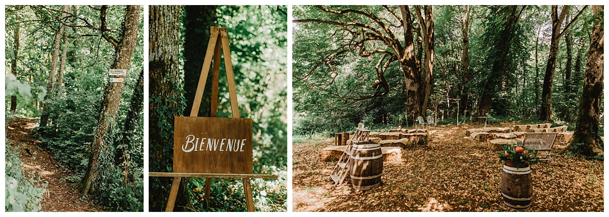 Le lieu est incroyable : une cérémonie laïque au milieu des arbres, le repas à lieu dans une vieille grange avec une déco à tomber.
