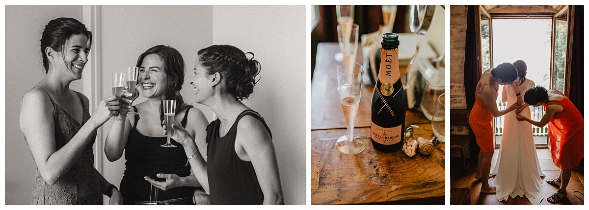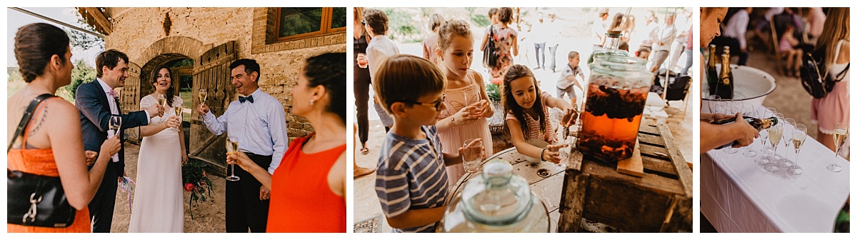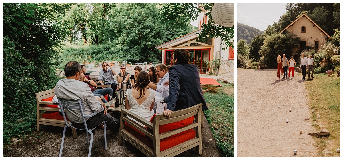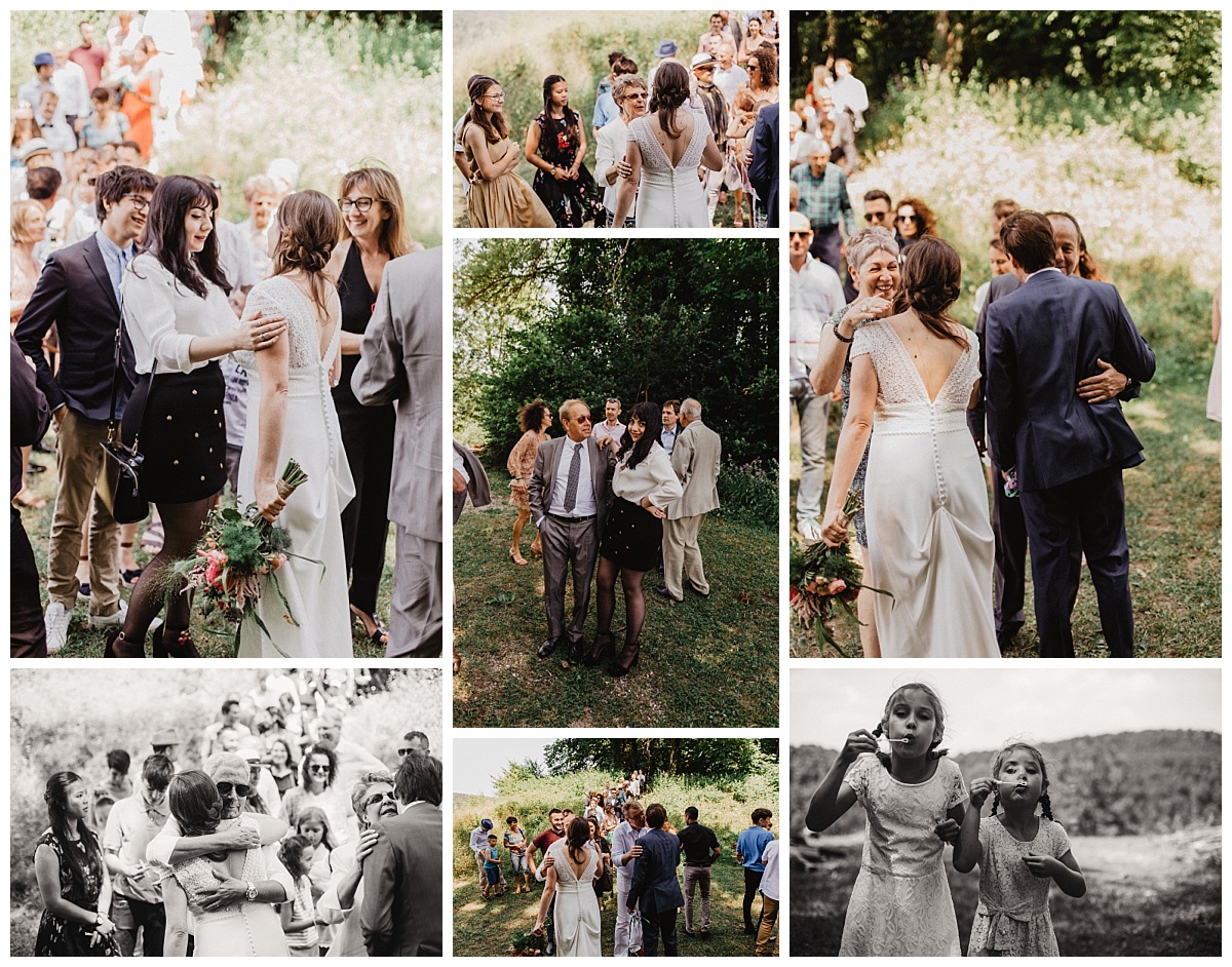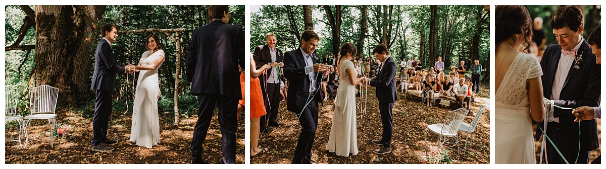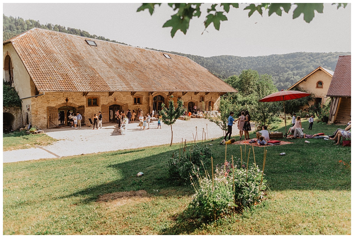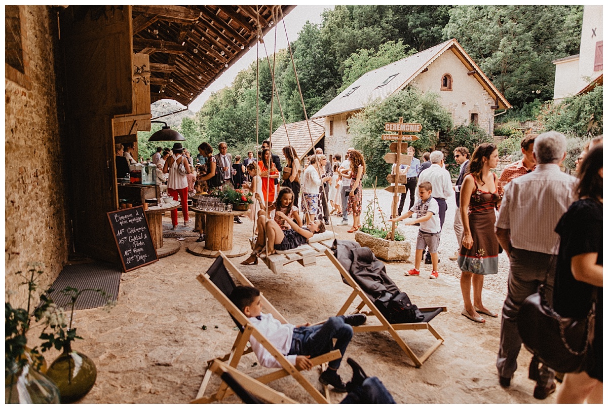 Le lieu est incroyable : une cérémonie laïque au milieu des arbres, le repas à lieu dans une vieille grange avec une déco à tomber.