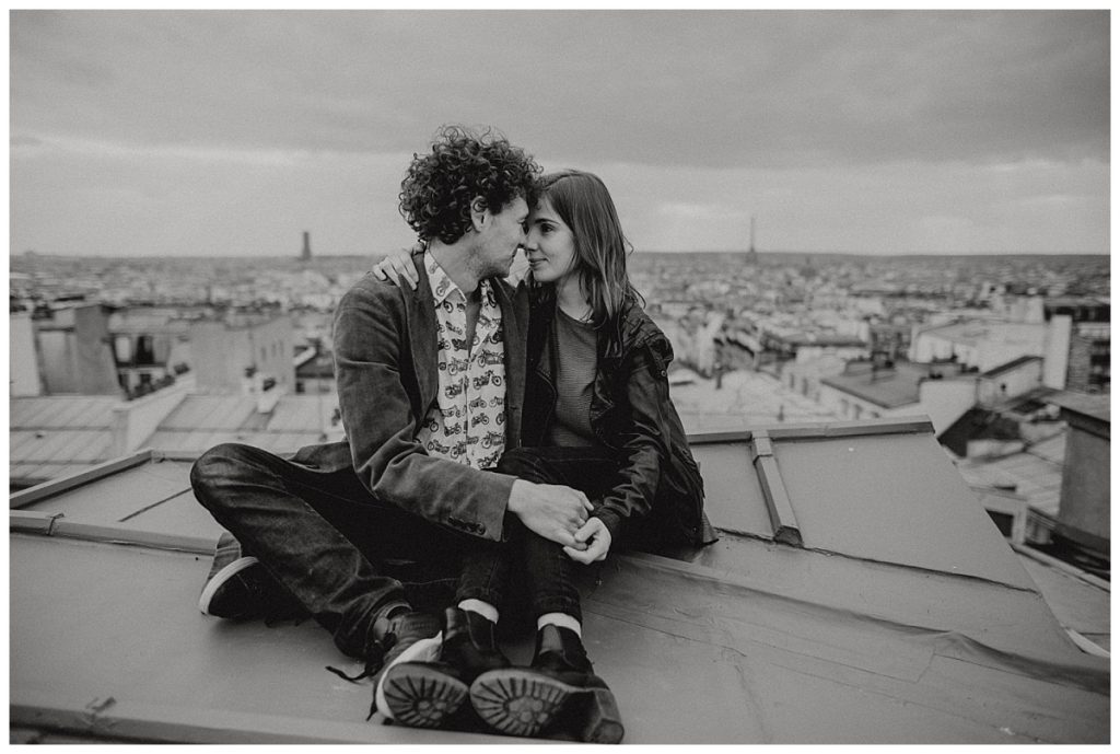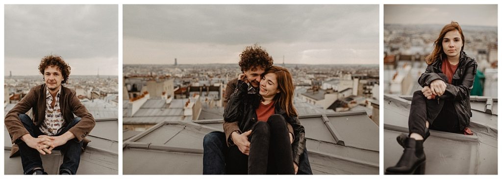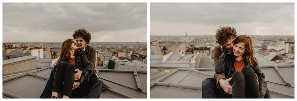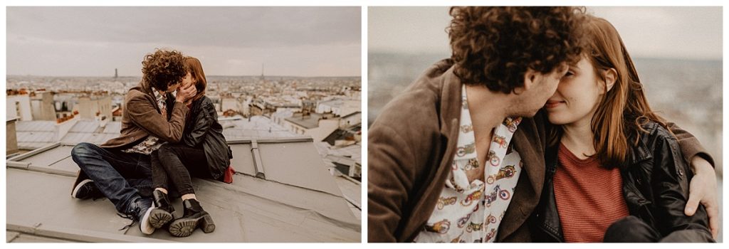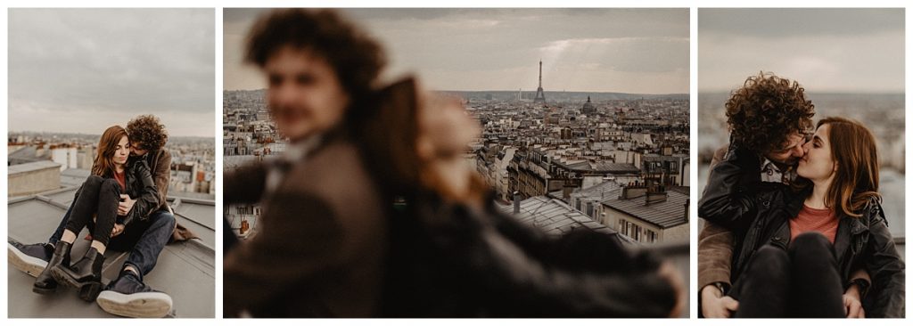 Alors, n a débuté cette love session dans le métro du 17e arrondissement direction Montmartre. On a pris un peu de hauteur pour continuer cette séance, avec des photos sur les toits de Paris avec vue sur la tour Eiffel.