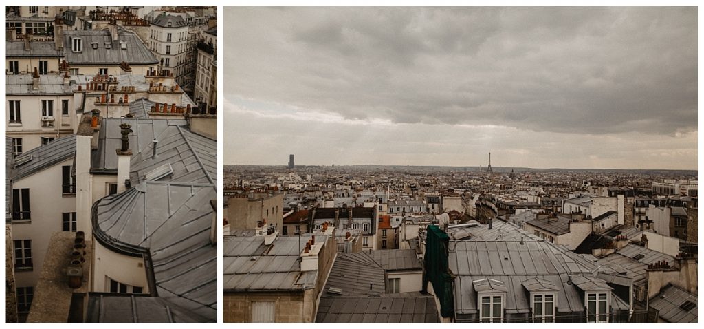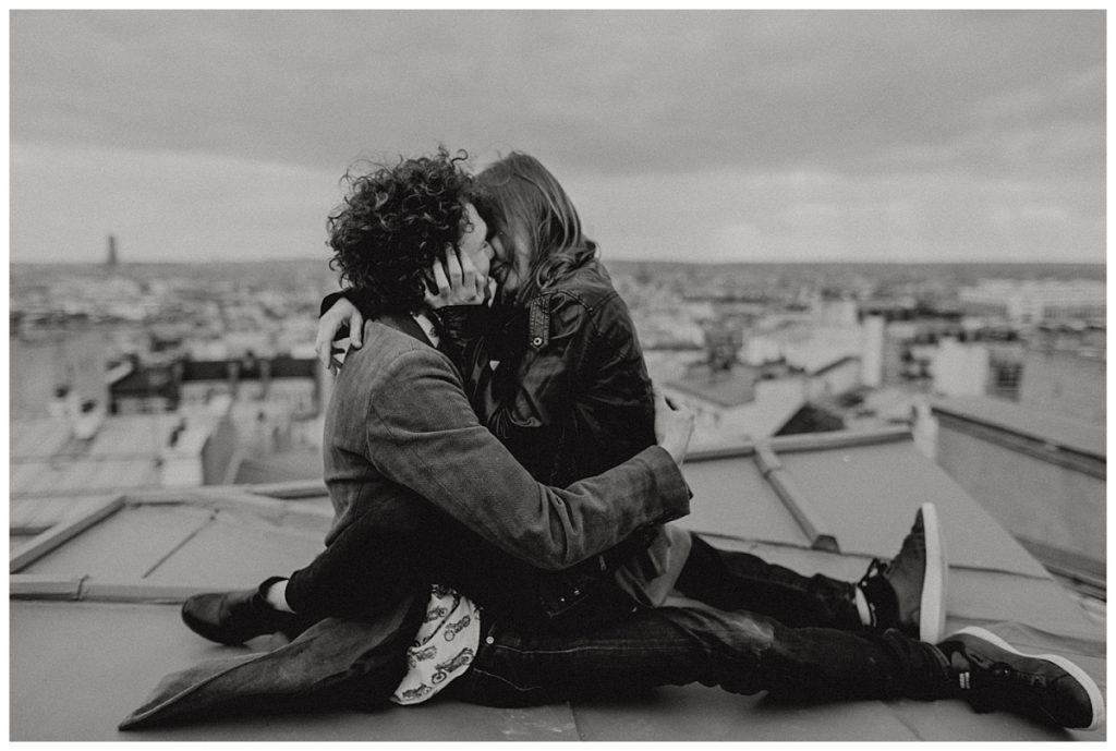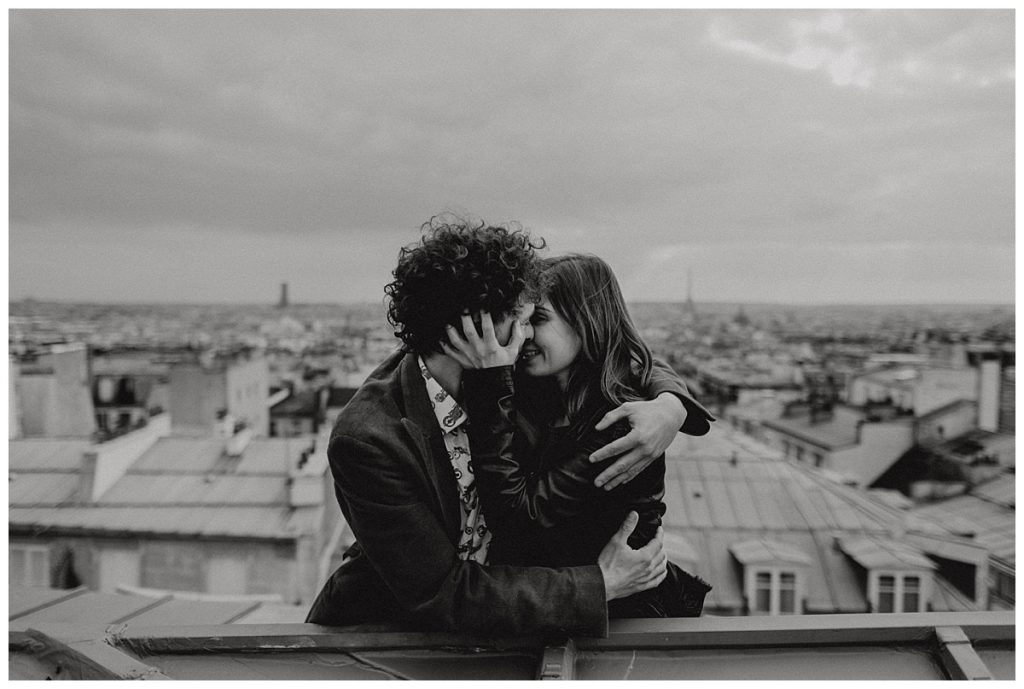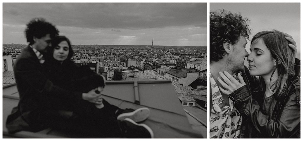 We started this love session in the subway from the 17th arrondissement towards Montmartre. We took a little height to continue this session, with photos on the rooftops of Paris overlooking the Eiffel Tower.